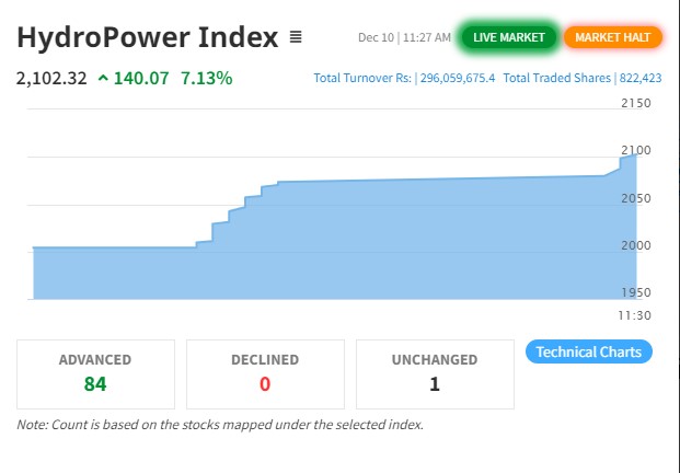काठमाडौं । साता कारोबारको पहिलो दिन हाइड्रोपावरमा लगानीकर्ताको आकर्षण अत्यधिक देखिएको छ । आज ११ बजेर २७ मिनेट जाँदा हाइड्रोपावर उपसूचक ७.१३ प्रतिशतले बढेको हो। बजार खुलेको ५ मिनेटमै ७४.२० अंकले बढेपछि २० मिनेटका लागि नेप्से स्थगित गरिएको थियो...