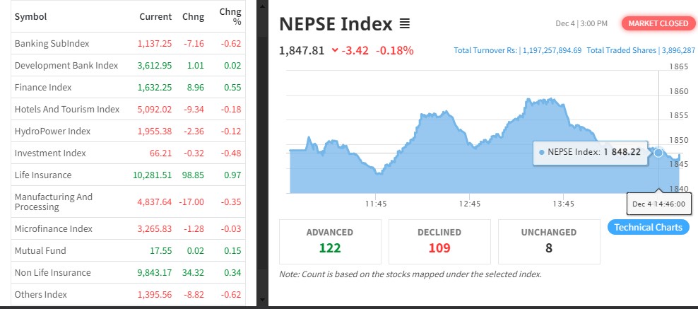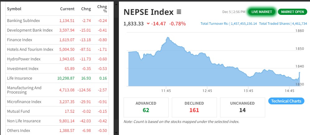 शेयर बजार बढ्न सकेन, जीवन बीमा बाहेक सबैको उपसूचक राताम्मे