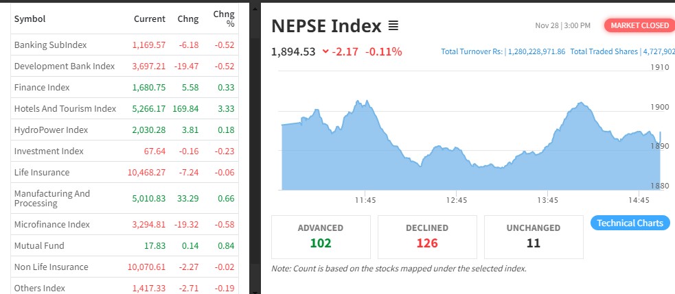 मौद्रिक नितिको पखाईमा लगानीकर्ता, १८ सयको बिन्दुमुनिमा सिमित नेप्से