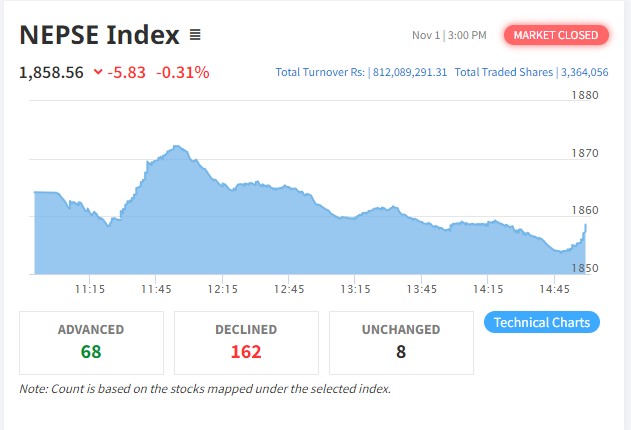 नेप्सेमा दोहोरो अंकको गिरावट, कारोबार रकम ५७ करोडमै सिमित