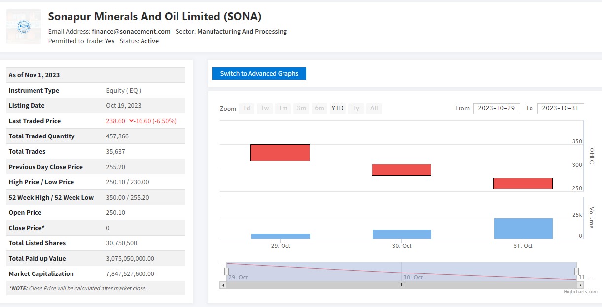 सोनापुर मिनरल्सको शेयरमा अत्यधिक गिरावट, अन्य कुनको कति ?