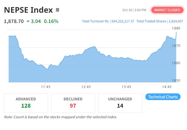 सामान्य अंकले बढ्यो नेप्से, कारोबार रकम ६९ करोडमै सिमित