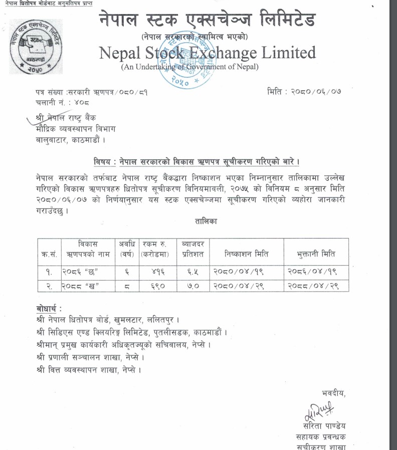नेप्सेमा नेपाल सरकारका दुईवटा विकास ऋणपत्र सूचीकृत