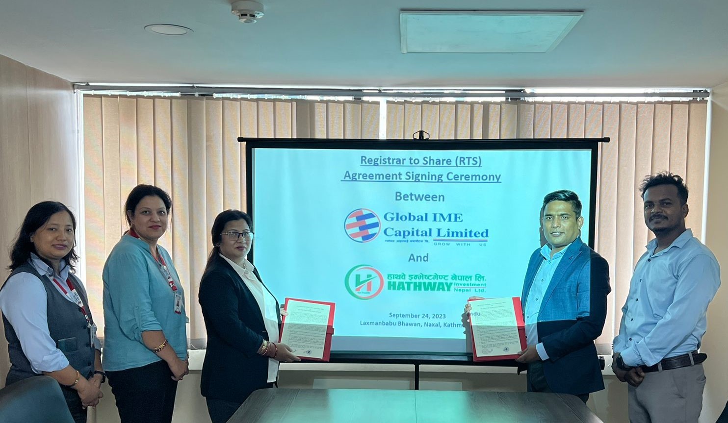 हाथवे इन्भेष्टमेण्ट नेपालको शेयर रजिष्ट्रारमा ग्लोबल आइएमई क्यापिटल