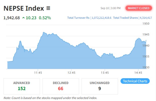 नेप्से १० अंकले बढ्यो, हाईड्रोपावरबाहेक सबै उपसूचकमा हरीयाली