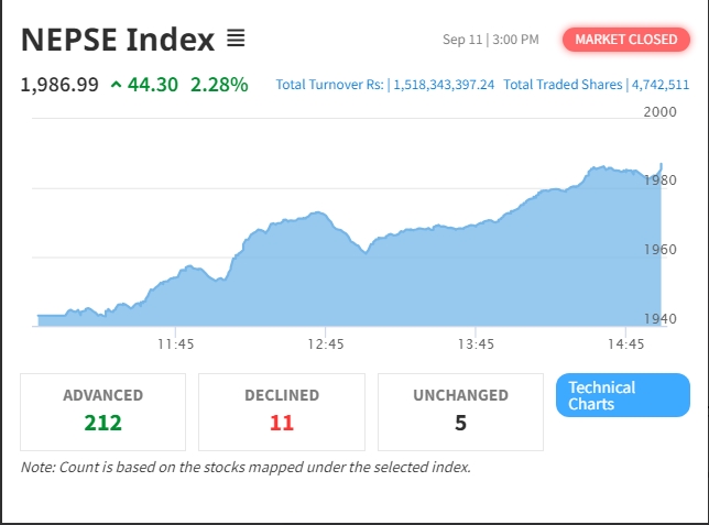 शेयर बजार बृद्धि हुँदा सबै उपसूचकमा हरियाली, कारोबार रकम डेढ अर्ब माथि