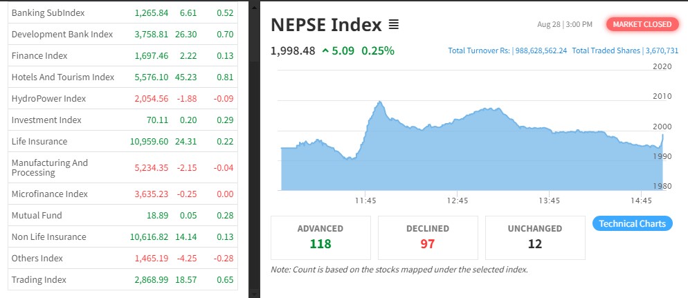 नेप्सेमा झिनो अंकको सुधार, कारोबार रकम भने घट्यो
