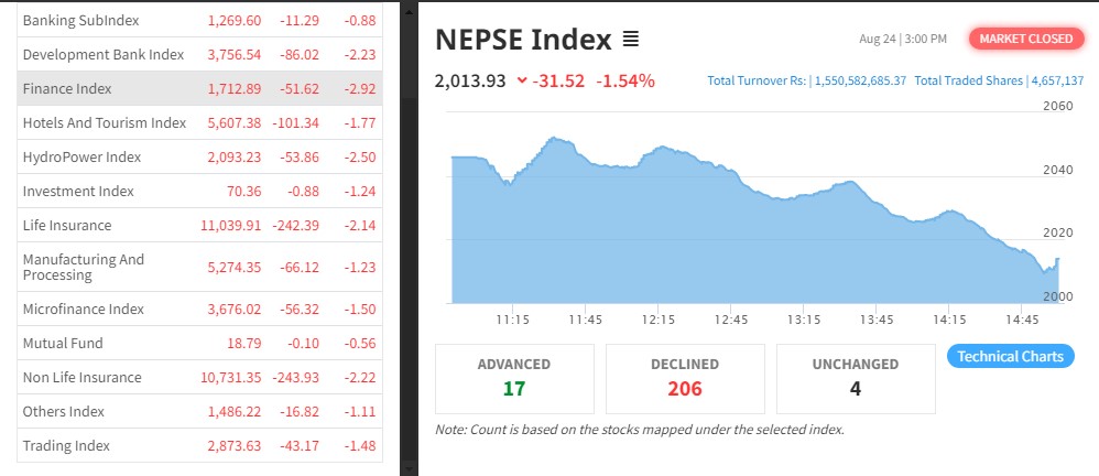 दोहोरो अंकले घट्यो नेप्से, सबै उपसूचकमा गिरावट