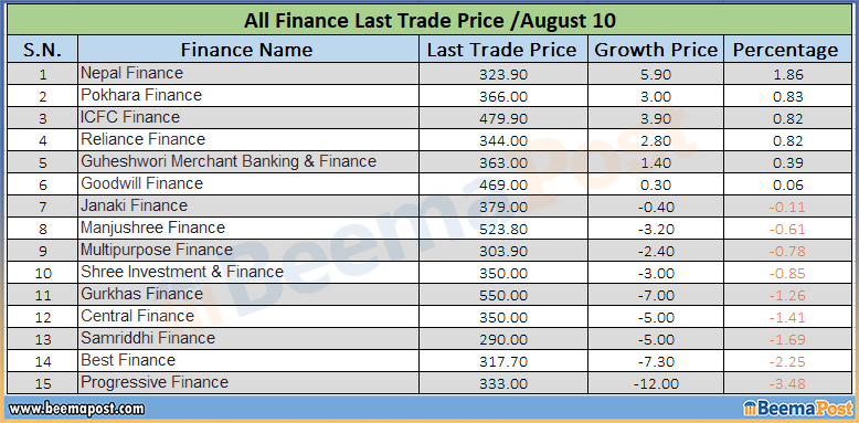 ४ सय रुपैयाँ मुनि नै किन्न पाइन्छ ११ फाइनान्स कम्पनीको शेयर, सर्वाधिक मूल्य साढे ५ सय रुपैयाँमाथि, कुनको कति ? (एलटीपीसहित)