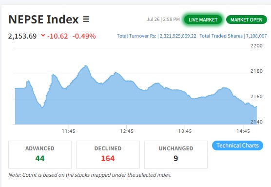 साना लगानीकर्ताको हितमा रहेको मौद्रिक नीति सार्वजनिकपछि शेयरबजार निरन्तर घट्यो