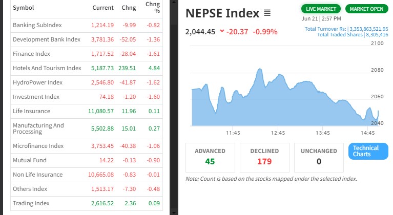 शेयर बजार घट्यो, होटल तथा टुरिजम क्षेत्रको उपसूचकमा छायो चमक