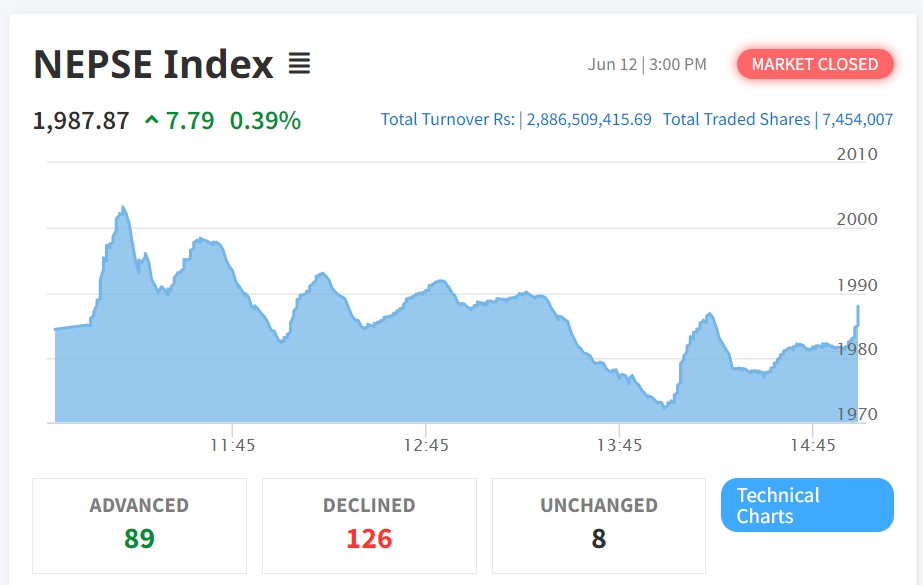 काठमाडौं । साताको दोस्रो दिन शेयरबजारमा झिनो अंकको सुधार देखिएको छ । नेप्से परिसूचक आज ७ अंकले बढेर १९८७ को विन्दुमा कायम हुन पुगेको छ । नेप्से सामान्य अंकले बढ्दा अघिल्लो दिनको तुलनामा कारोबार रकम भने घट्न पुगेको छ...