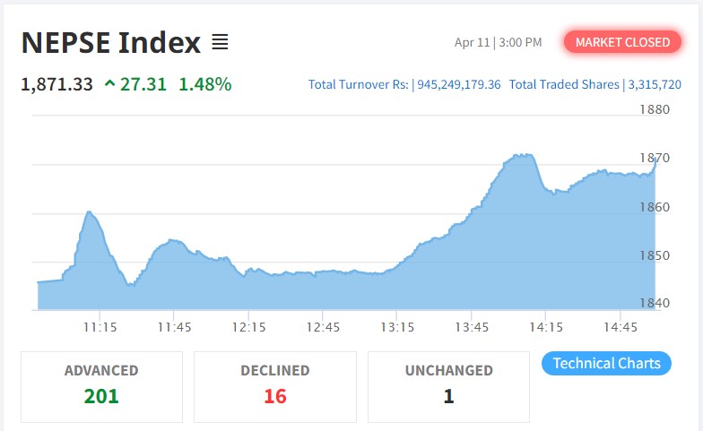 दोहोरो अंकले बढ्यो नेप्से, सबै उपसूचकमा हरियाली छाउँदा कारोबार ९४ करोडमा सीमित