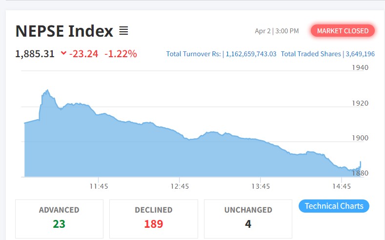 नयाँ अर्थमन्त्रीको आगमनमा शेयरबजारमा छाएन रौनक, नेप्से २३ अंकले घट्दा सबै उपसूचक राताम्य
