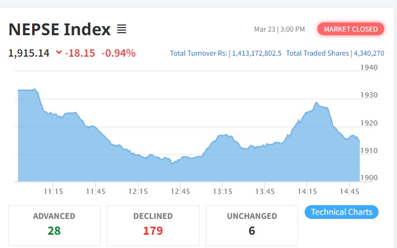 उतारचढावकाबीच दोहोरो अंकले घट्यो शेयरबजार, सबै उपसूचक राताम्य