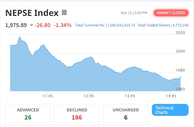 उतारचढावकाबीच २६ अंकले घट्यो नेप्से, चर्को विरोधका कारण बैकिङ्ग इन्डेक्स सर्वाधिक गिरावट