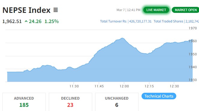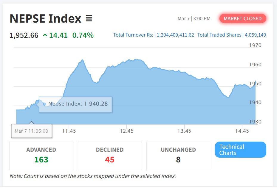 सामान्य अंकले बढ्यो नेप्से, कारोबार सवा अर्ब