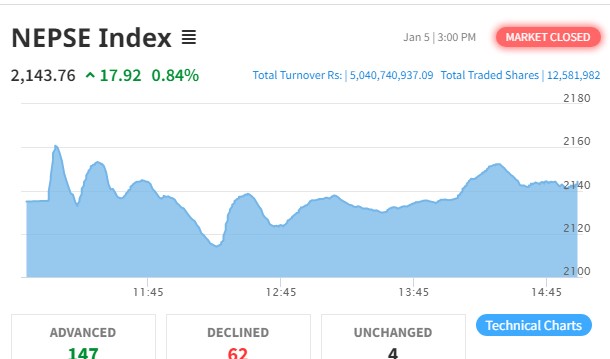 शेयरबजारमा ५ अर्बमाथिको कारोबार, यी हुन् सर्वाधिक खरिदबिक्री भएका कम्पनी