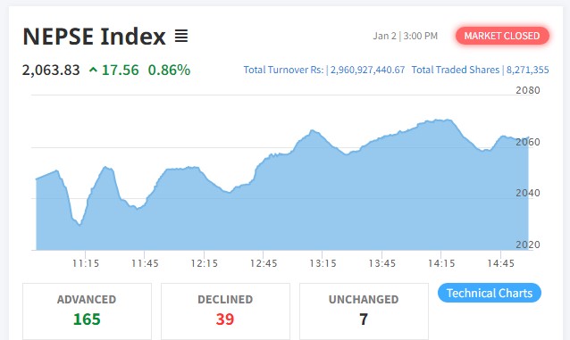 नेप्से १७ अंकले बढ्यो, जीवन र निर्जिवनको उपसूचक उचालियो