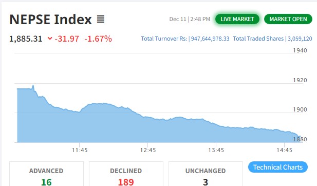 नेप्सेमा भारि गिरावट, लगानीकर्तामा उत्साह घट्दा कारोबार खुम्चियो