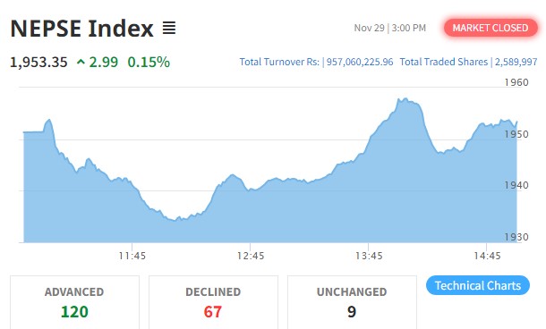 झिनो अंकले बढ्यो नेप्से, कारोबार ९५ करोडमा सीमित