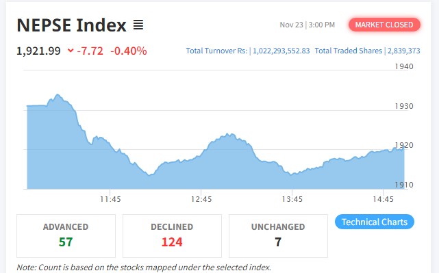 शेयरबजारमा देखिएन रौनक, नेप्से ७ अंकले घट्दा कारोबार सन्तोषजनक