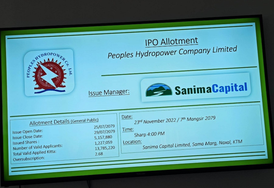 पिपुल्स हाईड्रोपावरको आइपीओ आज बाँडफाँड हुँदै, कतिको होला हात खालि ?