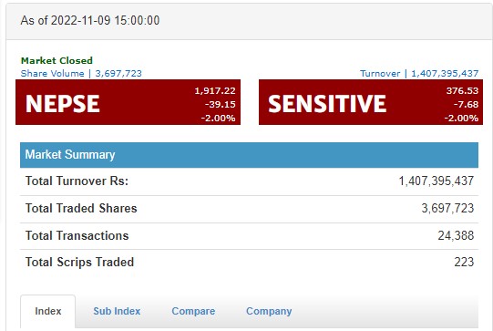 उतारचढावकाबीच शेयरबजारमा ३९ अंकको गिरावट, फाइनान्स सूचक सर्वाधिक घट्यो