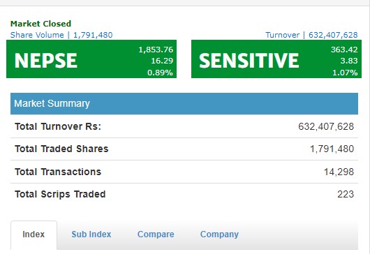 दशैंअघि शेयर कारोबारको अन्तिम दिन १६ अंकले बढ्यो नेप्से, १२ उपसूचकमा छायो हरियाली
