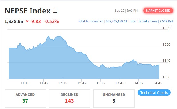 उतारचढावकाबीच शेयरबजारमा झिनो अंकको गिरावट, करोडमा झर्यो कारोबार