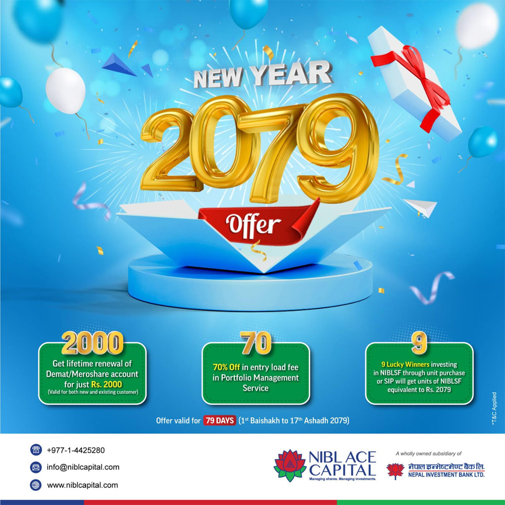 काठमाडौं । एनआइबिएल एस क्यापिटल लिमिटेडले नयाँ वर्ष २०७९ को अवसरमा अफर ल्याएको छ । क्यापिटलले वैशाख १ गतेदेखि असार १७ गतेसम्म मान्य हुनेगरी उक्त अफर सार्वजनिक गरेको हो । कम्पनीले पछिल्लो सयम पूँजीबजारमा बढ्दै गइरहेको क्रेजलाई मध्यनजर गर्दै...