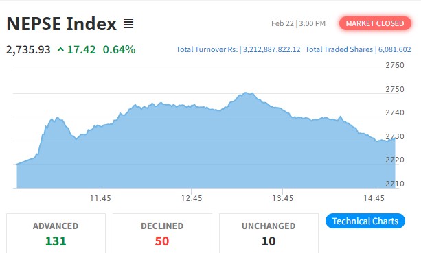 नेप्से १७ अंकले बढ्दा ३ अर्ब माथिको शेयर कारोबार