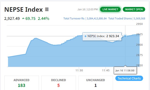 आर्थिक संकटकाबीच नेप्सेमा उछाल, एक घण्टामै ६९ अंकले बढ्यो नेप्से