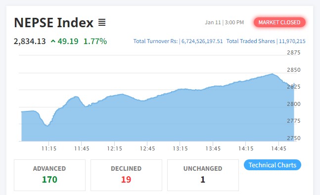 नेप्सेमा छायो हरियाली, ४९ अंकको बृद्धि हुँदा ६ अर्बमाथिको कारोबार