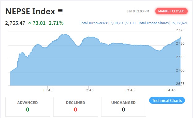 नेप्सेमा छायो हरियाली, ७३ अंकले बृद्धि हुँदा ७ अर्बमाथिको कारोबार