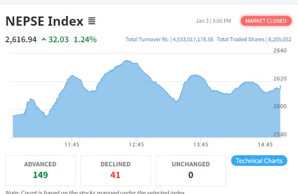 नेप्से ३२ अंकले बढ्दा साढे ४ अर्बमाथिको शेयर कारोबार