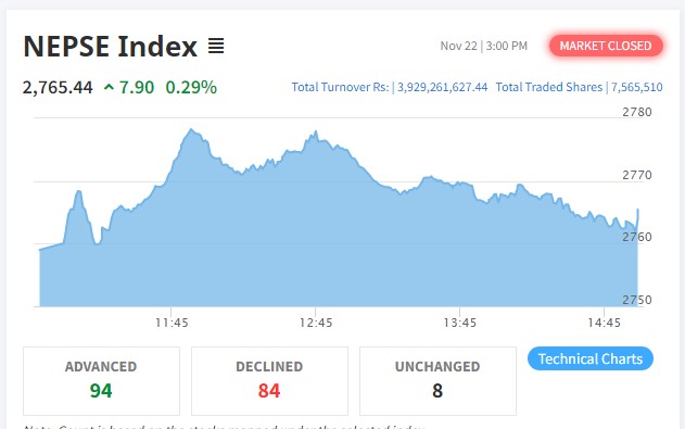 नेप्से ७ अंकले बढ्दा कारोबार खुम्चियो, बैंक र हाइड्रोपावरमा लगानीकर्ताको आकर्षण कायमै