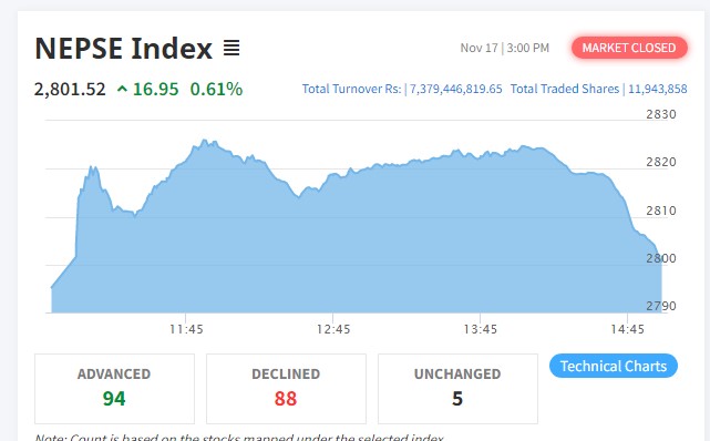 नेप्से १६ अंकले बढ्दा कारोबार ७ अर्ब नाघ्यो, एनटिसिको सर्वाधिक कारोबार