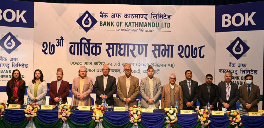 बैंक अफ काठमाण्डूको वार्षिक साधारण सभा सम्पन्न, १४ प्रतिशत लाभांश पारित