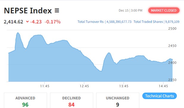 उतारचढावकाबीच ४ अंकले घट्यो नेप्से, साढे ४ अर्बमा कारोबार सीमित