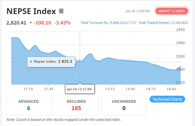 आज एकै दिन १०० अंकले घट्यो मूल्यपरिसूचक, कारोबार भने उत्साहजनक