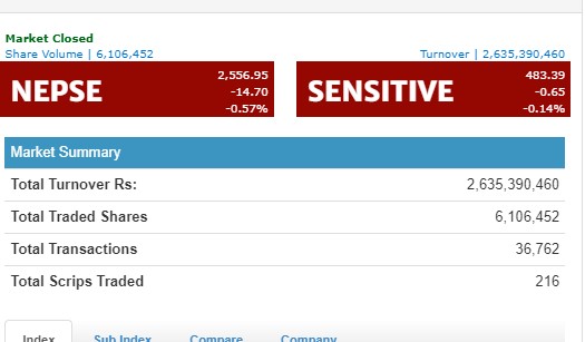 नेप्से दोहोरो अंकले घट्दा साढे २ अर्ब माथिको शेयर कारोबार