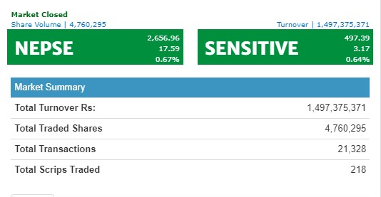 नेप्से १७ अंकले बढ्यो, म्युचुअल फण्ड बाहेक सबै उपसूचकमा छायो हरीयाली