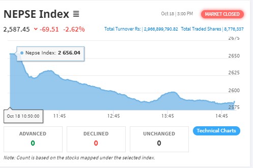 नेप्से ६९ अंकले घट्दा ट्रेडिङ बाहेक सबै उपसूचक राताम्मे