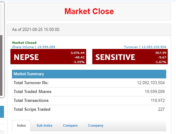 शेयर बजार आतंकित, एकै दिन ४८ अंकले घट्यो नेप्से, कारोबार १२ अर्वमा सीमित