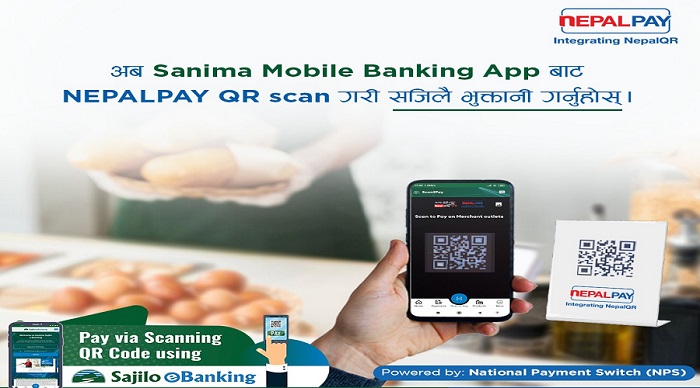 सानिमा बैकको मोबाइल बैंकिङबाट नेपाल पे क्युआर स्क्यान गरी भुक्तानी हुने