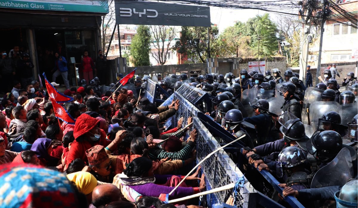 बालुवाटार घेर्न पुगेका लघुवित्त पीडितले निषेधित क्षेत्र तोडे, प्रहरीलाई धकेल्ने केही पक्राउ